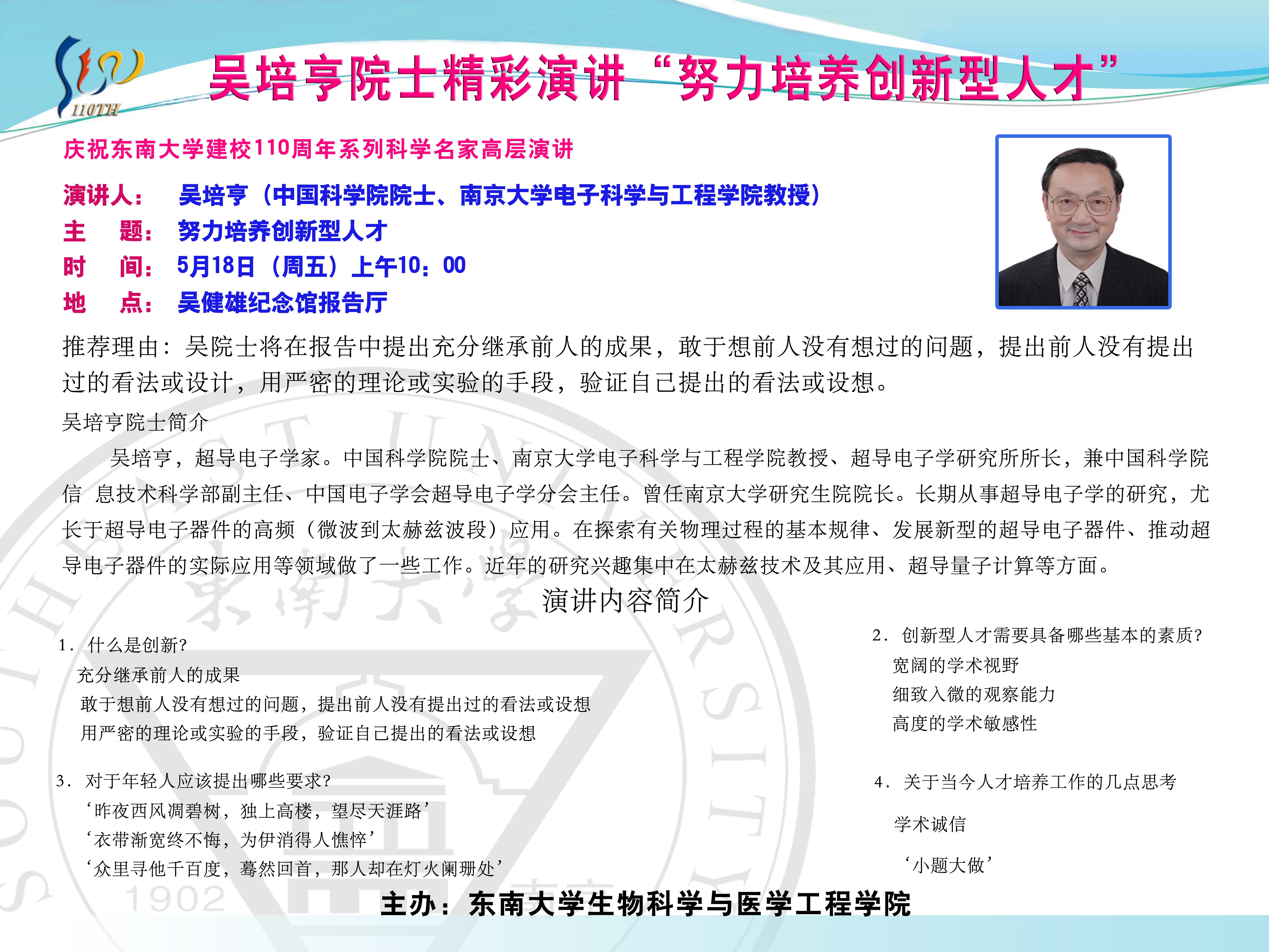 吴培亨院士学术报告