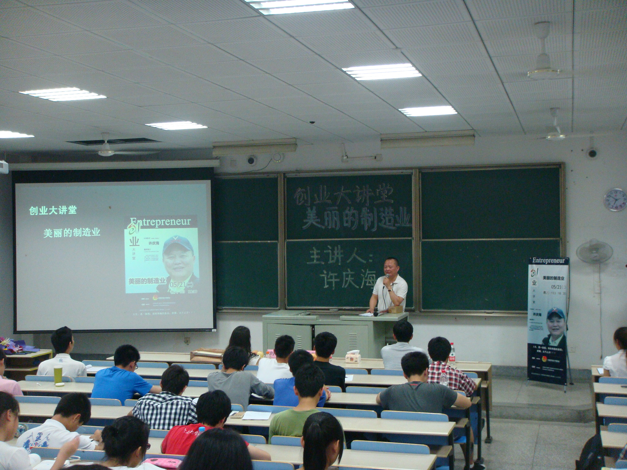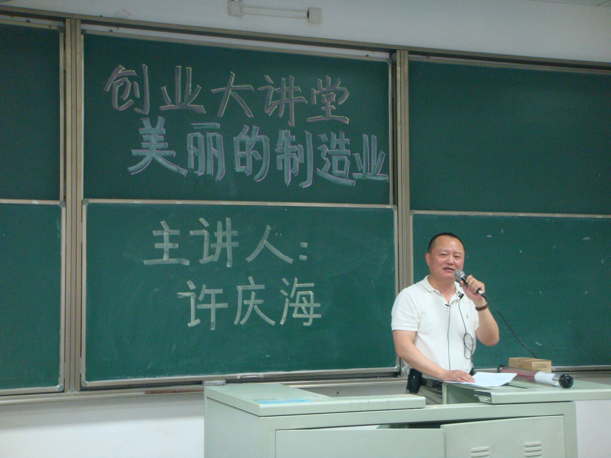 本次主讲嘉宾是毕业于南京工学院的南京海威机械有限公司董事长许庆海先生,许总以美丽的制造业为题深入浅出的从什么是制造业入手分析中国制造业在世界上的地位,以中西差距为切入点为中国制造业指点迷津。许总用简洁易懂的语言为我们定义了真正的制造业,纠正了我们很多人对制造业认知上的误区。他以自己的亲身经历为例为同学们描摹了一条创业者从白手起家到建立起一个商业帝国的漫漫长征路,为广大东大学子的创业梦插上了一双隐形的翅膀。