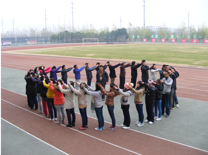 “急速60秒”要求参与者在60秒内识别卡片并依次找出代表从一到三十的数字,每组只有一个可以接触卡片,两组队员有三轮比赛机会。这个游戏考验了员工们的竞争与合作精神,这种精神是老员工逐渐要接触并且学习具备的素质。“穿越电网”要求同学们依次通过大小不同的模拟电网网孔,期间不可触碰电网,且每个网孔只可使用一次。在严苛的规则面前,员工们的团队协作能力受到了挑战,每位同学都要全身心的投入,谨慎认真地对待,合理策划网孔的分配使用,许多同学在这项活动中深刻体会到合理分工,承担责任的重要性。“鼓动人心”要求组员每人牵一根系在鼓上的绳子,以鼓面垫排球。同学们需要齐心协力保持鼓面的平衡,考察团队凝聚力,富有趣味。
