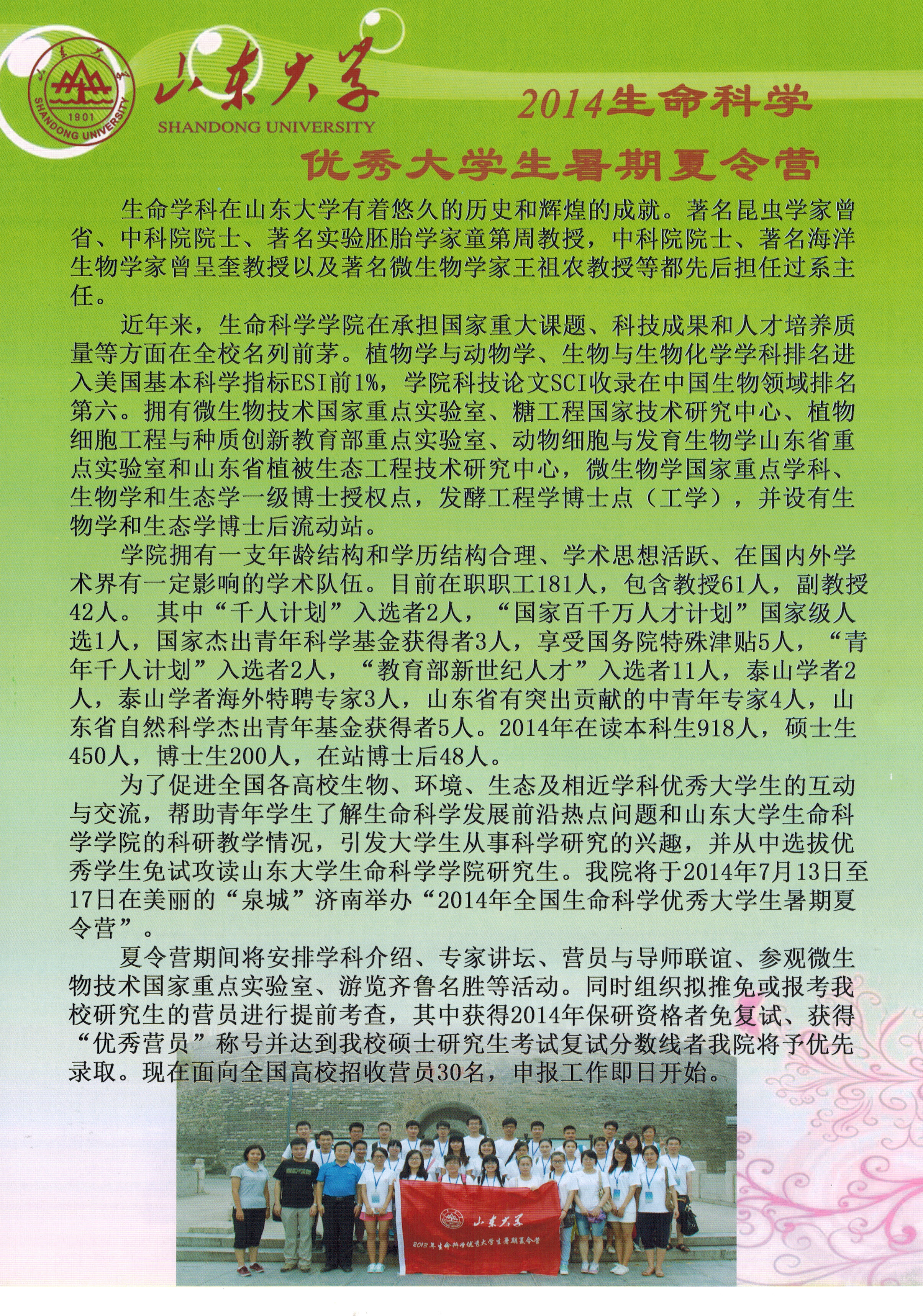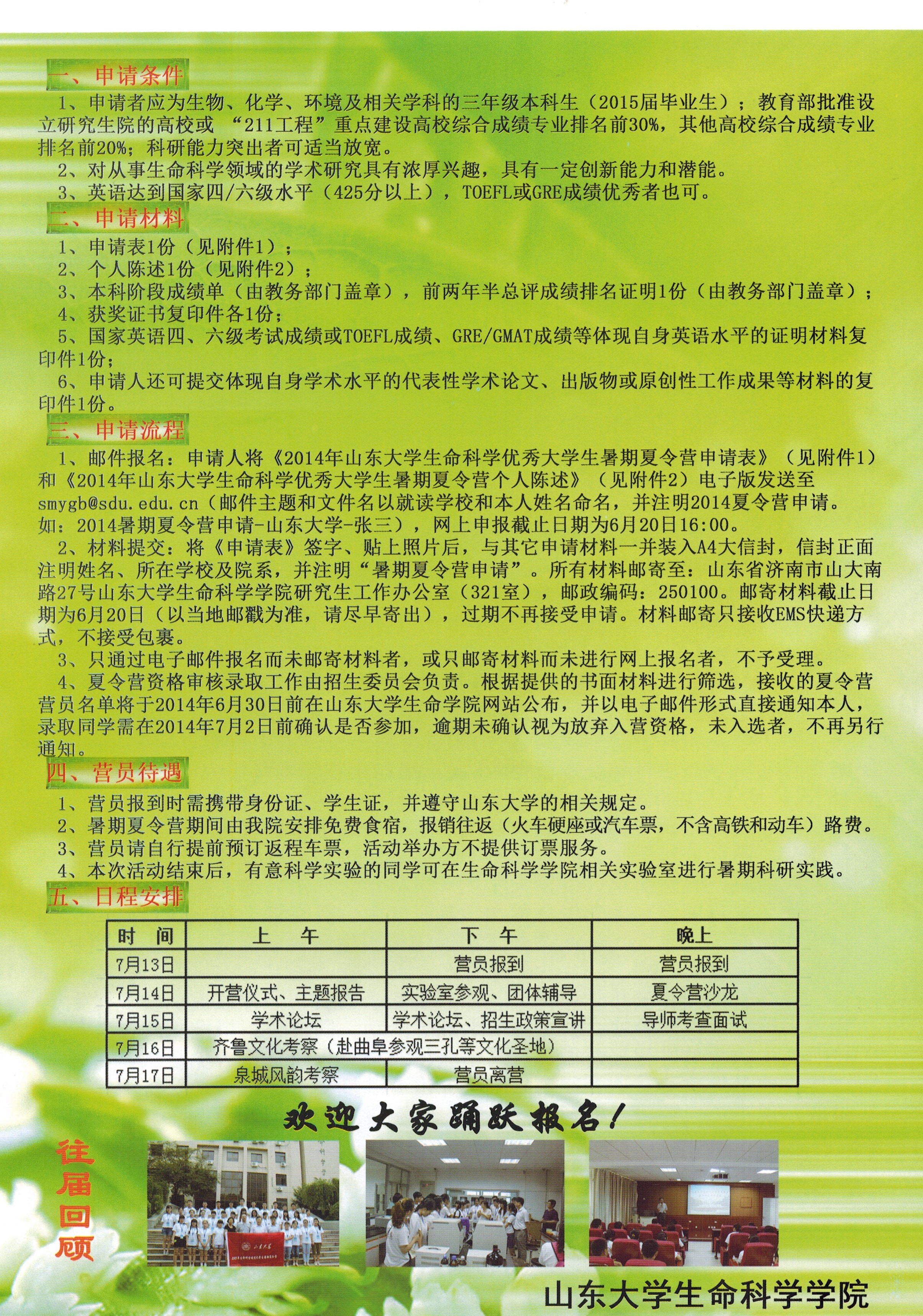 山东大学2014生命科学优秀老员工暑期夏令营
