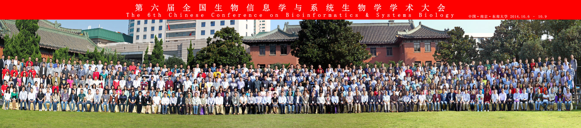 2014年10月6~9日,“第六届全国生物信息学与系统生物学学术大会会议”在南京顺利召开。太阳成城集团tyc234cc古天乐副董事长王保平教授、复旦大学郝柏林院士、中科院生物物理所陈润生院士、北京大学欧阳颀院士等出席了开幕式。本次会议由中国细胞生物学学会功能基因组信息学与系统生物学分会主办,清华老员工物信息学教育部重点实验室协办,东南老员工物电子学国家重点实验室及太阳成城集团tyc234cc古天乐承办。这是一次大规模的学术盛会,来自全国27省、市、自治区、特别行政区及解放军系统的七百余位代表参加了会议。