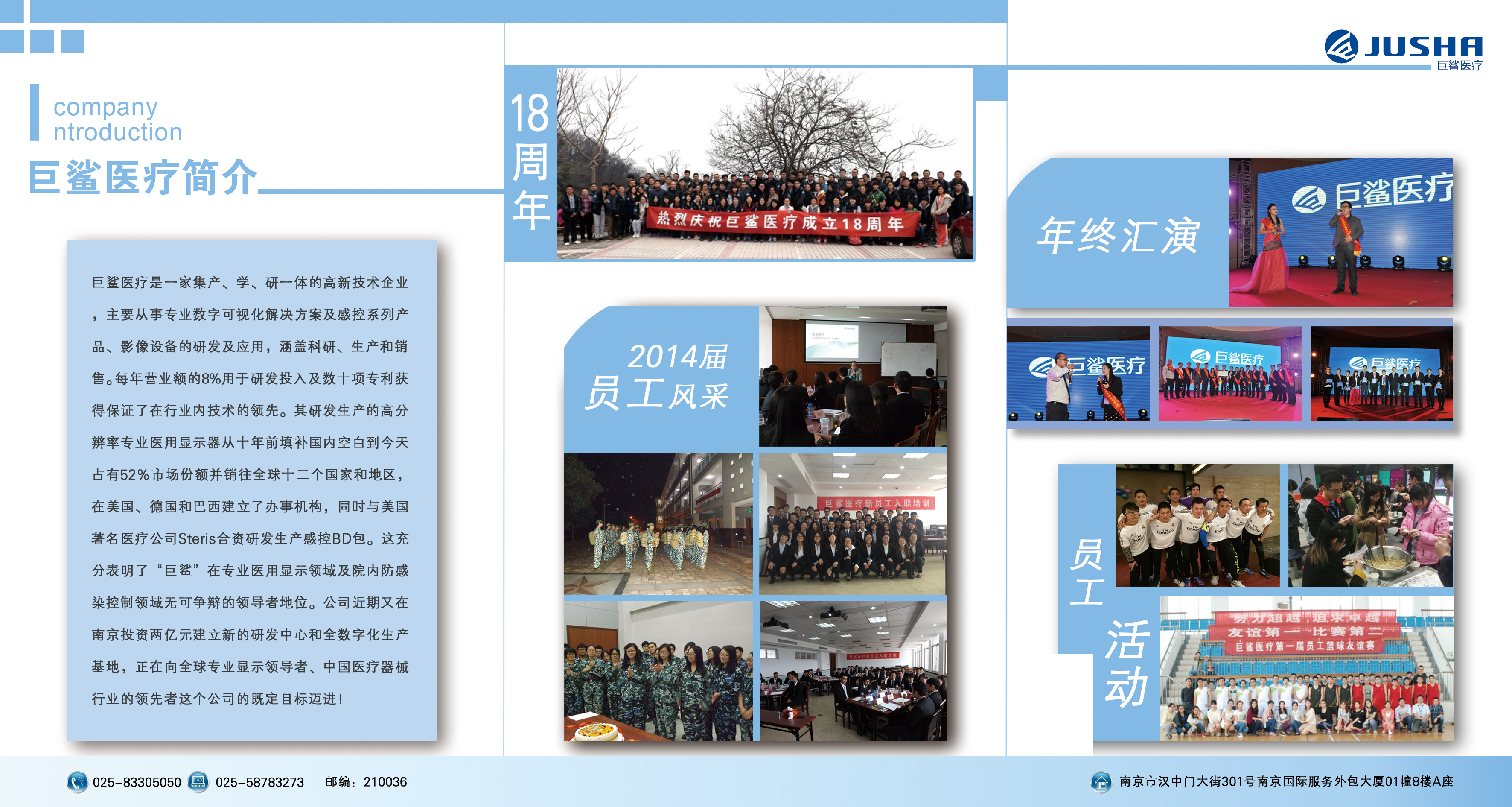 巨鲨医疗是一家集产、学、研一体的高新技术企业,主要从事专业数字可视化解决方案及感控系列产品、影像设备的研发及应用, 涵盖科研、生产和销售。每年营业额的8%用于研发投入及数十项专利获得保证了在行业内技术的领先。其研发生产的高分辨率专业医用显示器从十年前填补国内空白到今天占有52%市场份额并销往全球十二个国家和地区,在美国、德国和巴西建立了办事机构。巨鲨医疗尽己所能、奉献社会,将“出色的履行公司的社会义务”作为我们的企业宗旨之一。巨鲨医疗以开发更加便捷实用的高科技医疗产品、最大程度解除病人痛苦为己任,努力将自身发展为全球知名的专业显示和医疗高科技企业,努力实现巨鲨人为人类健康事业而奋斗的最终目标。