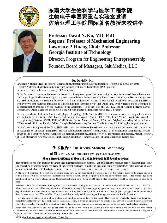 美国佐治亚理工学院 David Ku教授学术报告