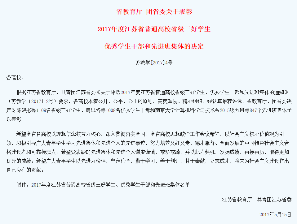公司唐健、郭刘洋同学获江苏省三好员工称号