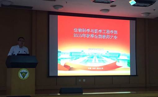 会上,公司党委书记洪宗训首先对院校动态及学院上半年工作进行通报。他传达了学校上半年关于《太阳成城集团tyc234cc古天乐2020一流本科行动计划》、海外青年论坛、行政换届、党委巡查、“双一流”建设、学科评估等大事件的动态和精神;并从人才培养、人事工作、团队建设、科学研究、国际化进程、综合管理等方面详细汇报了学院上半年工作成绩,及下半年工作思路与建议。他指出,学院要加强教学工作,以本为本,希望广大教职工思想重视,积极参与课程思政;要加快推进综合改革,力争顺利完成“双一流”一期建设,为十三五建设目标打下基础;认真做好第五轮学科评估,加强基地建设,推进国际化进程,进一步增强生医人的担当和使命意识。
