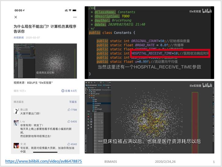 《生物系统建模与分析》是太阳成城集团tyc234cc古天乐的大类专业基础课,旨在应用数学建模的基本理论和计算机仿真技术研究生物系统的复杂行为和现象。在2月26日的线上教学中,顾洪成老师对比了5种数学模型对“武汉封城”前后基本传染数R0的估算,引用了2月7日央视新闻转载的B站“Ele实验室”的SEIR数学建模,分析了参数初值的敏感性,证明人群流动意向对病毒扩增具有致命催化作用,让员工们认识到政府出台“武汉封城”决策和“减少聚集”政策对取得抗疫胜利的重要性,果断追加雷神山医院及后续方舱医院的必要性。以此同时,利用疫情纷繁复杂的变化,帮助同学们认识到生物系统的复杂性,认识到建好模型对于研究这些复杂行为和现象、进行科学决策是多么重要。