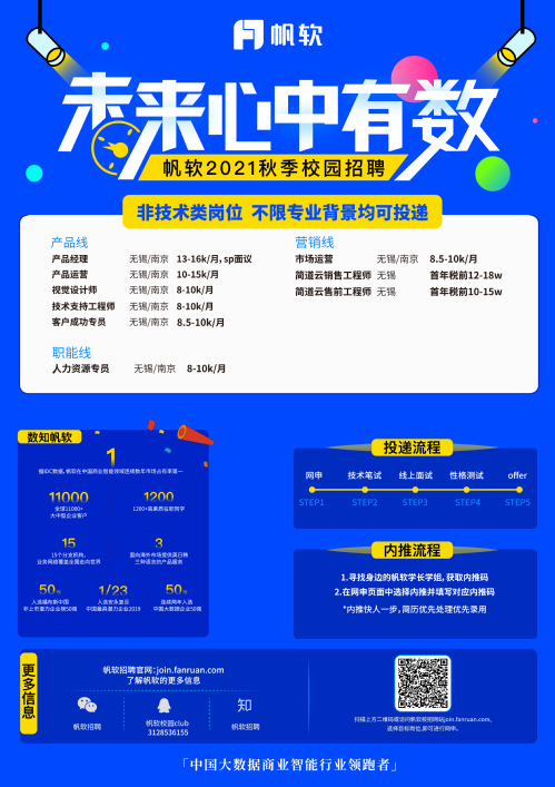 4、其他岗位详情欢迎查看并投递:join.fanruan.com~