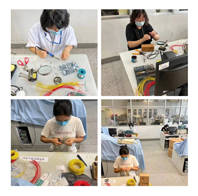 课程按照防疫要求调整后,将理论教学和实验教学线上线下有机结合,采用多元化的教学模式。由于员工人数较往年大幅增加,团队迅速采购相关传感器材料,加班加点焊接制作了近百件课程用器材传感器,将传感器和口袋实验箱等器件分发、邮寄给员工。课程的理论部分以学习任务形式下达,员工根据学习任务要求自主研学,并线上以翻转课堂形式完成相关知识点的学习、研讨和答疑;实验部分要求员工根据课程提供的传感器,设计后继数据采集及处理系统,采用线上视频等方式进行交流、指导。