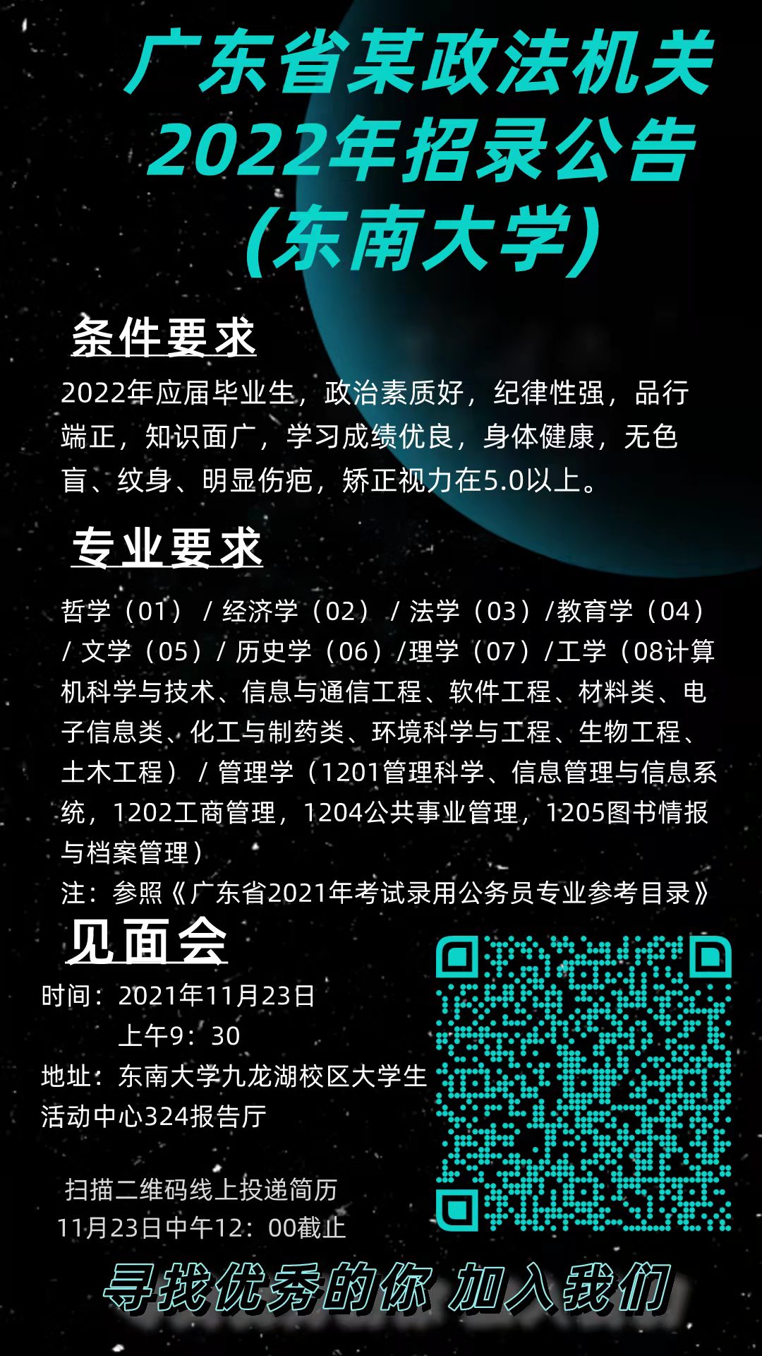 21.广东省某政法机关2022年招录公告