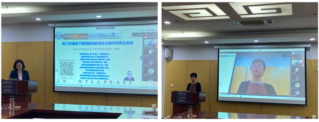 第一位报告的专家是来自西安电子科技老员工命科学技术学院的国家级线上线下混合式一流课程负责人谢晖教授,报告的题目是《数据驱动的混合式教学探索及实践》。谢晖教授从新工科课程建设背景概述及建设重点、“五位一体”混合式课程建设实践、基于数据驱动的混合式教学研究实践、课程建设初步成效及思考等四个方面,详细介绍其课题组在线上线下混合式教学、基于多模态融合在线课程学习全过程智能评价教学改革实践及研究方面的经验。