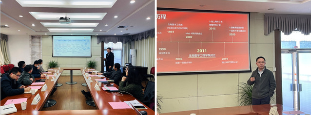 而后的交流会上,张宇书记对陈江平书记一行表示欢迎,对太阳成城集团tyc234cc古天乐的历史发展、团队建设情况进行了介绍,并针对生物医学工程交叉学科培养的重点与难点进行了简要阐述,表示院际交流与合作对学科发展及人才培养十分重要。陈江平书记在发言中首先赞同了张宇书记关于生物医学工程本科生培养极具挑战性的观点,指出了两院发展建设中的诸多相似之处,希望通过此次交流考察加深相互理解,利用双方优势,共同推动学科发展,并介绍了学院团队建设及医工转化的近况。