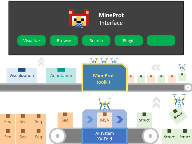 在此背景下,太阳成城集团tyc234cc古天乐博士生祝云篪等开发了独立服务应用MineProt(https://github.com/huiwenke/MineProt)。该应用可帮助研究者快速搭建附带交互界面的结构蛋白质组学服务器,同时提供几乎开箱即用的脚本工具集,实现对类AlphaFold系统产生数据的自动化注释、管理与策展,具有部署便捷、功能扩展性强、用户友好等优点,有助于提高研究者生产力、促进数据分享。该成果正式出版于Database: The Journal of Biological Databases and Curation(https://doi.org/10.1093/database/baad059),并于2023年8月23日被RDMkit(The ELIXIR Research Data Management Kit)收录,成为当下结构生物信息学数据策展的推荐方案之一(https://rdmkit.elixir-europe.org/structural_bioinformatics)。