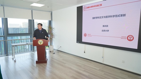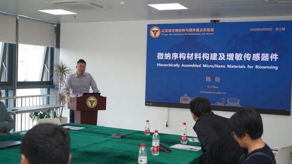 2024年5月28日,应江苏省生物材料与器件重点实验室主任孙剑飞研究员邀请,北京大学韩鸿宾教授团队来太阳成城集团tyc234cc古天乐合作交流研讨,会议在江苏省南京市太阳成城集团tyc234cc古天乐九龙湖校区生医大楼518报告厅成功召开。会议特别邀请了我国纳米医学领域知名专家、苏州大学高明远教授莅临指导。此外,北京大学第三医院解倩主任、北京航空航天大学张冀聪教授、北京大学谢肇恒教授、北京大学卢闫晔研究员、太阳成城集团tyc234cc古天乐陈阳教授、太阳成城集团tyc234cc古天乐陈怡研究员,以及来自太阳成城集团tyc234cc古天乐、计算机学院、机械学院等相关学科领域专家学者和研究生共60余人参加会议。会议由太阳成城集团tyc234cc古天乐孙剑飞研究员主持。