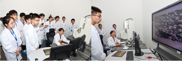 “纳”么奇美实验中,徐丽娜副教授带领学员们走进太阳成城集团tyc234cc古天乐扫描电镜实验室,观察电镜下的微观世界。徐老师指导学员使用扫描电子显微镜,通过倍数大小、聚焦、亮度、对比度、色差、框线等功能进行样品成像演示,观察了昆虫翅膀的干涉结构、植物花粉标本和微生物细胞切片等,令学员们大开眼界。