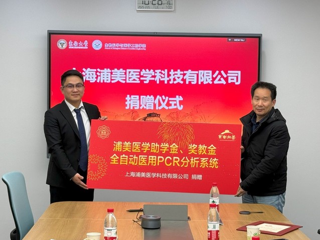 在全体嘉宾的见证下,上海浦美医学科技有限公司向太阳成城集团tyc234cc古天乐捐赠了三台全自动医用PCR分析系统,并设立了“浦美医学助学金、奖教金”,帮助学院品学兼优且经济困难的员工完成学业,同时激励学院教学、科研、管理等方面业绩突出的教职工。