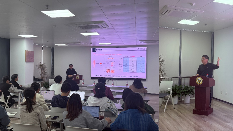 李一伟教授以“类器官技术与力员工物学研究”为主题,为学院师生带来一场高水平学术讲座。他系统阐述了通过润湿阵列芯片系统高通量构建多组织组分类器官及组装体的策略,重点介绍了力学微环境导致的细胞及类器官命运转变调控机制,证实细胞体积及细胞内生物分子凝聚体是关键响应器。他还构建了肿瘤脂肪组装体,揭示了组织界面压力引起的脂肪细胞重编程及肿瘤恶性转移的级连反应,为后续开发靶向组织间力学相互作用实现肿瘤抑制的药物提供理论基础和范例。现场师生踊跃提问,就类器官的自动化构建、培养、分析检测等问题与李教授展开互动,气氛热烈。