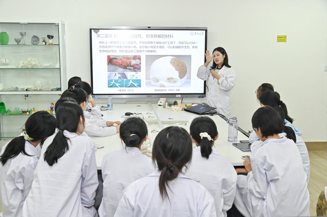 紧接着,陈怡老师以“微纳序构材料与智能医学传感”为题作了一场精彩讲座。他系统讲解了微纳材料与传感器的基础知识,以及纳米级医疗器械的制造原理及其在医学中的前沿应用,使学员们对科研工作有了初步而直观的认识,激发了大家对生物医学工程领域的浓厚兴趣。