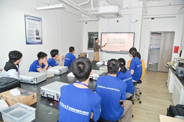 开营仪式结束后,在志愿者的引导下,学员们参观了医工楼一楼展厅,深入了解了学院的历史沿革与辉煌成就。展厅内,微流控芯片、血管介入机器人、康复机械手等先进的科研成果令他们目不暇接,充分感受到学院在生物医学工程领域所取得的前沿进展与创新实力。