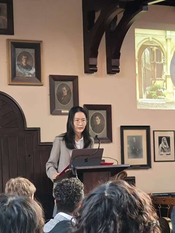 项目期间,员工们还与剑桥大学师生进行了专题交流座谈,促进了学术观点碰撞与跨文化理解。丰富多彩的活动使员工得以深度体验世界一流大学的学术氛围与文化底蕴,有效提升了国际沟通能力、批判性思维与全球素养。经过为期两周的交流学习,所有同学均顺利通过考核并获得项目证书,生杨洁同学作为员工代表在结业典礼上发言。