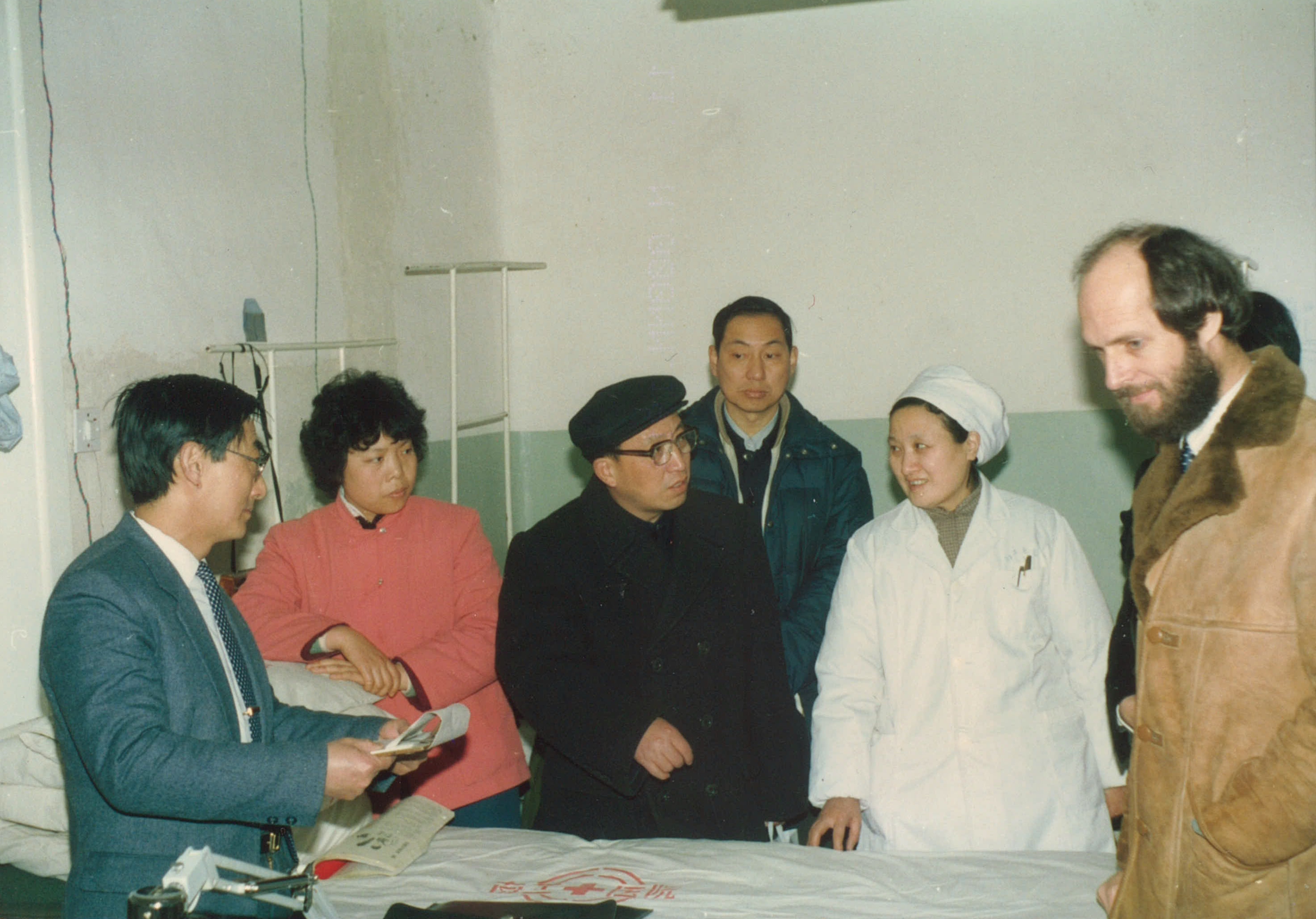 左起:1、叶学千,2、医院人员,3、顾本立,4、周子文,5、何克倜,6、联合国副代表